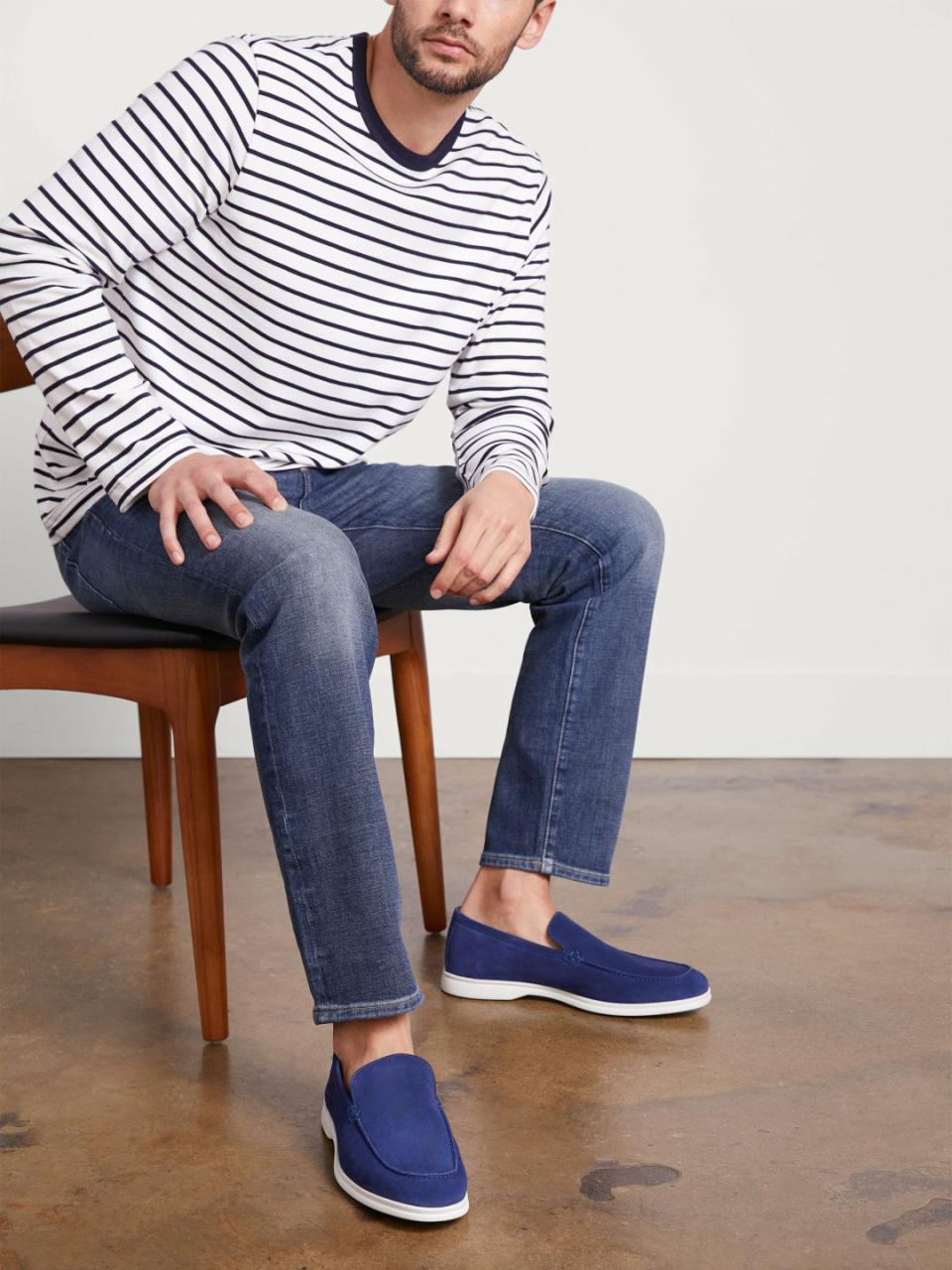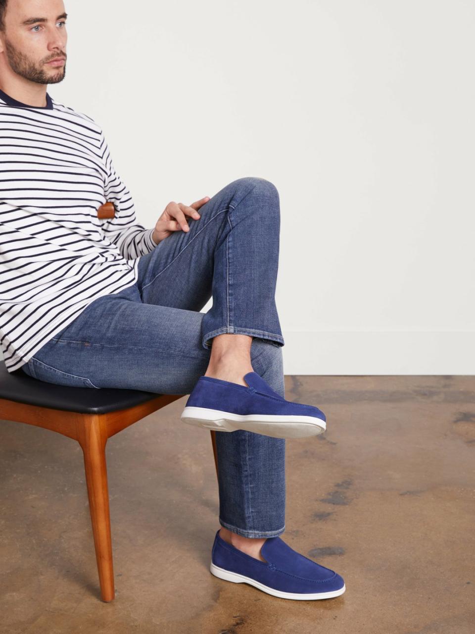 This ultra-soft, hand-stitched suede loafer is set on a sneaker-like rubber sole for a shoe that pairs just as well with jeans as it does a suit. An ideal year-round, any-occassion style, The Fabio is a masterful blend of traditional Italian artisan techniques and modern function.Italian kid suede upper