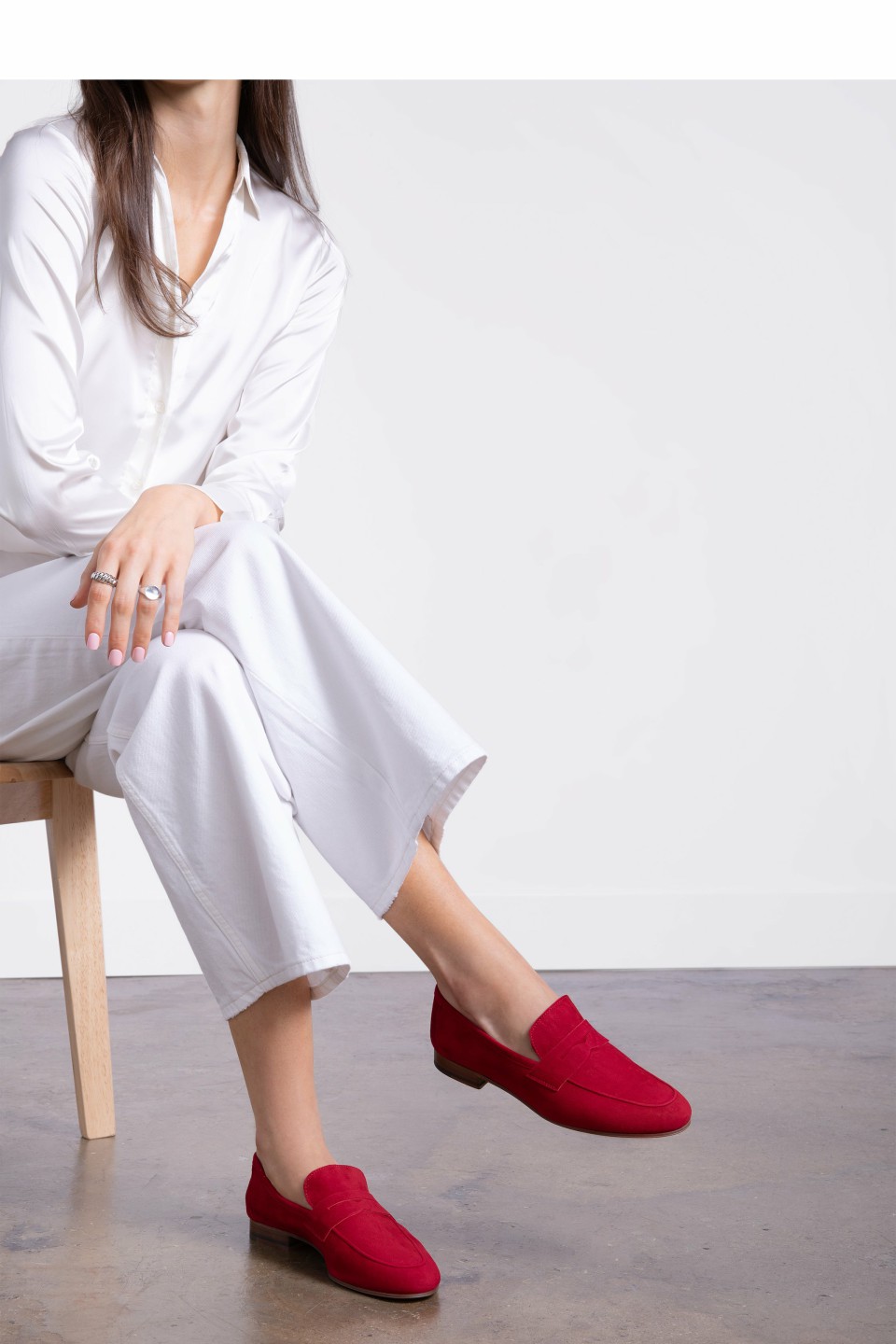 The Sacca Donna is our classic Italian loafer, sewn by hand in luxuriously soft suede. Unlined for utmost flexibility, lightness, and comfort, it also features rubber inserts on the sole and a stacked leather heel for added traction. It’s the ideal year-round shoe.Italian kid suede upper