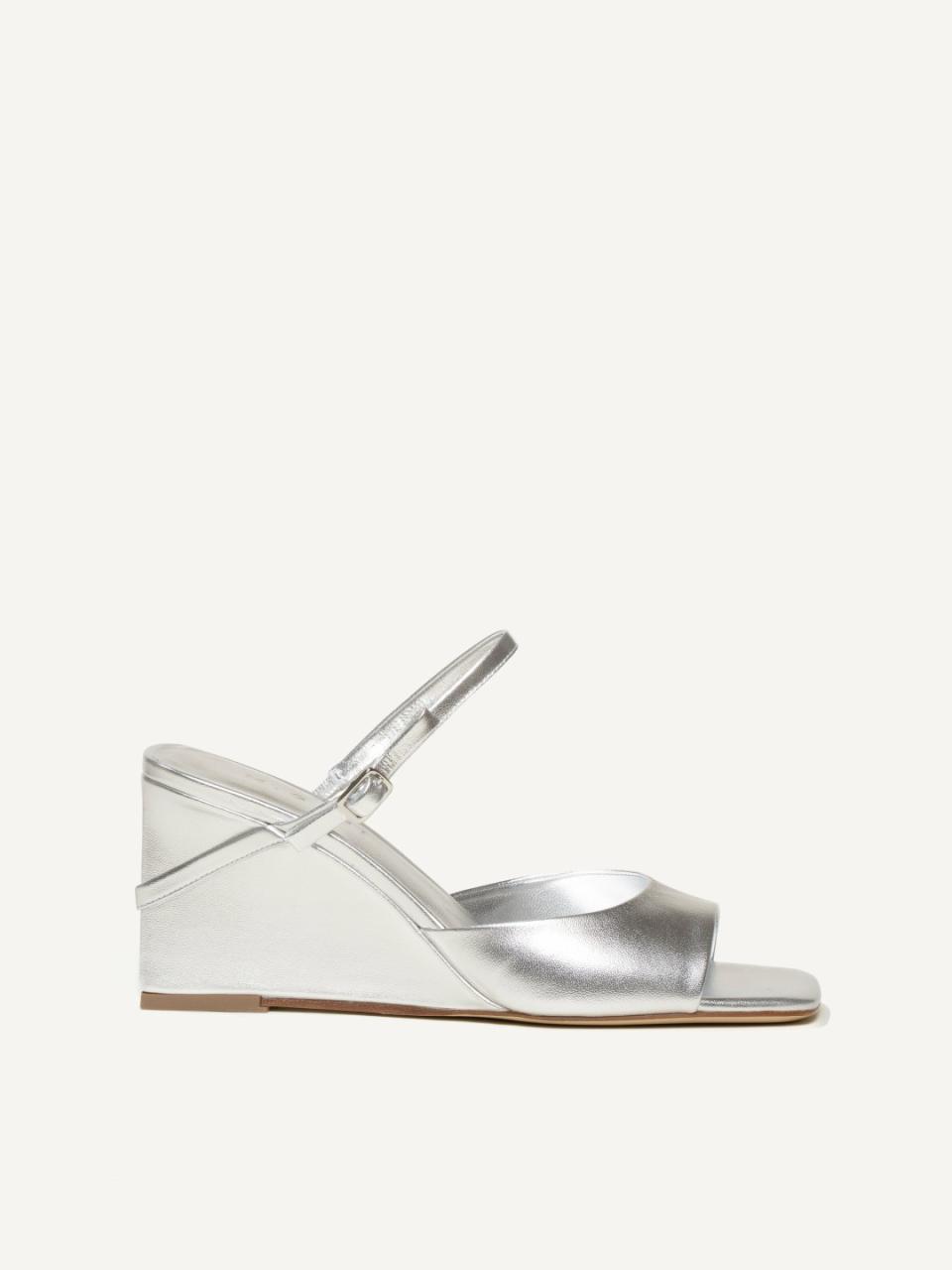 Experience the perfect blend of Italian elegance and everyday comfort with The Enrica heels. Expertly handcrafted in metallic nappa leather by our skilled artisans in Campania, these heels offer sophisticated style with exceptional wearability. The sleek design features a flattering leg-lengthening silhouette, with a slender strap that elegantly contours the squared wedge heel and wraps gracefully across the foot’s arch—finItalian patent leather upper