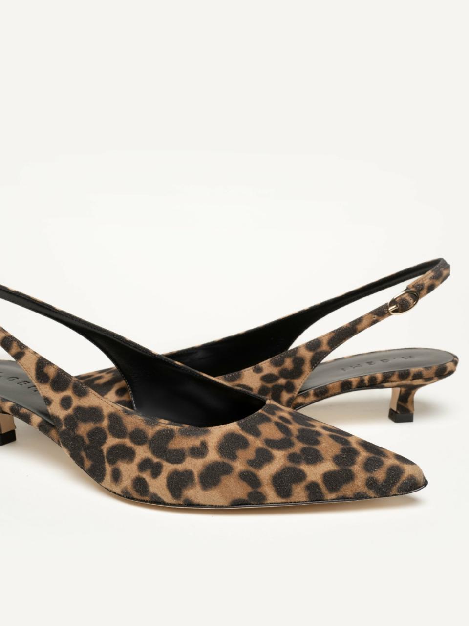 Meet our show-stopping leopard print suede version of The Lisinda, an instant sensation that captured fashion-forward hearts everywhere. This elegant slingback combines a sophisticated pointed toe with a gracefully sculpted kitten heel, creating a look that’s both contemporary and enduringly classic.Italian patent leather upper