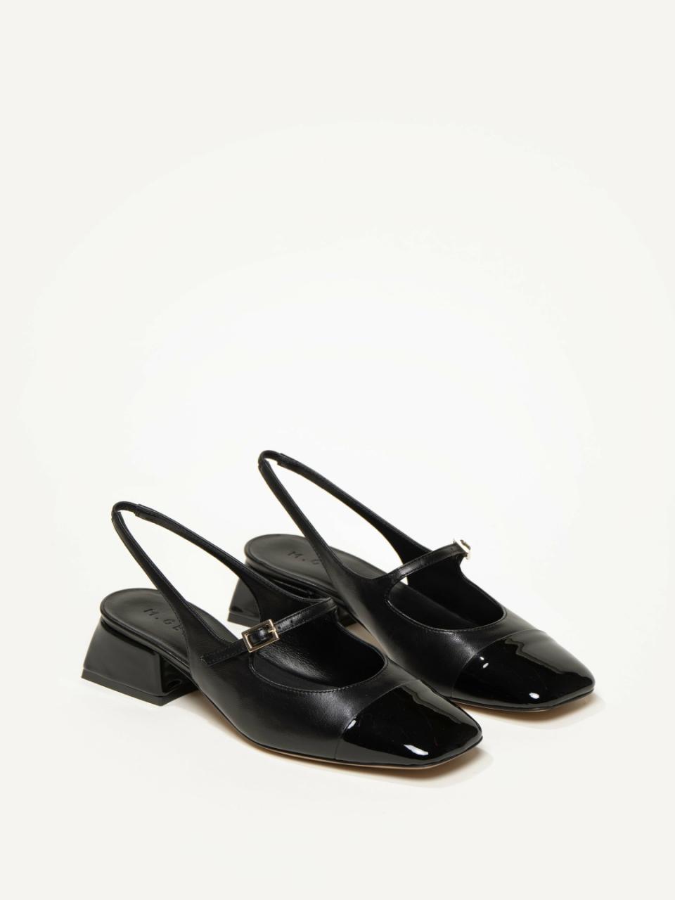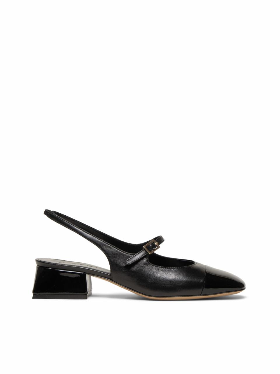 Discover the perfect fusion of three major fashion trends with our beautifully crafted block heel Mary Jane slingbacks. Expertly handcrafted in Tuscany using premium smooth nappa leather, these elegant shoes feature a sophisticated cap toe design that creates a truly feminine silhouette perfect for any occasion.Italian nappa and patent leather upper