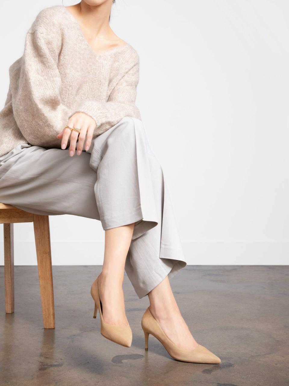 All the leg-lengthening effects of our signature stiletto in a more walkable height. The Esatto’s sleek silhouette is achieved by hand cutting a single piece of Italian leather to form the seamless, elegantly curved upper—a hallmark of luxury craftsmanship. It’s a rarely done, hands-on process our artisans’ family hasItalian kid suede upper
